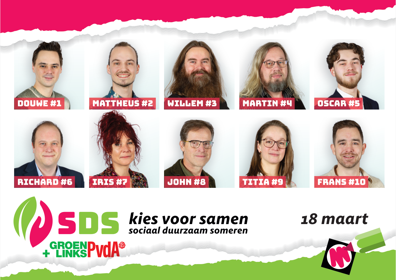 Na de eerdere presentatie van de top-10 in december maken we vandaag de volledige lijst bekend voor de gemeenteraadsverkiezingen van 18 maart. De animo voor de gezamenlijke lijst van Sociaal Duurzaam Someren, GroenLinks en de Partij van de Arbeid is zo groot dat we mensen hebben moeten teleurstellen, meer dan 50 personen is helaas niet toegestaan.